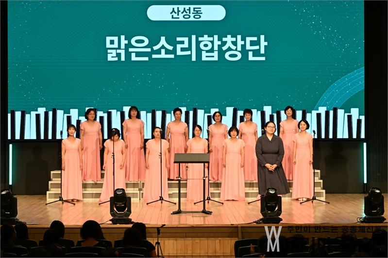 대전문화재단(대표이사 백춘희)은 13일 17시 30분에 한남대학교 성지관에서 '2025년 대전마을합창단 성과공유회'를 성료했다. 행사는 국민의례, 내빈소개, 축사에 이어 5개구 마을마다 합창단의 노래 2곡씩 멋지게 불러주었다. 이날 행사는 2025년 지원받은 30개 마을합창단이 대전시민 약 800여 명이 참여해 한