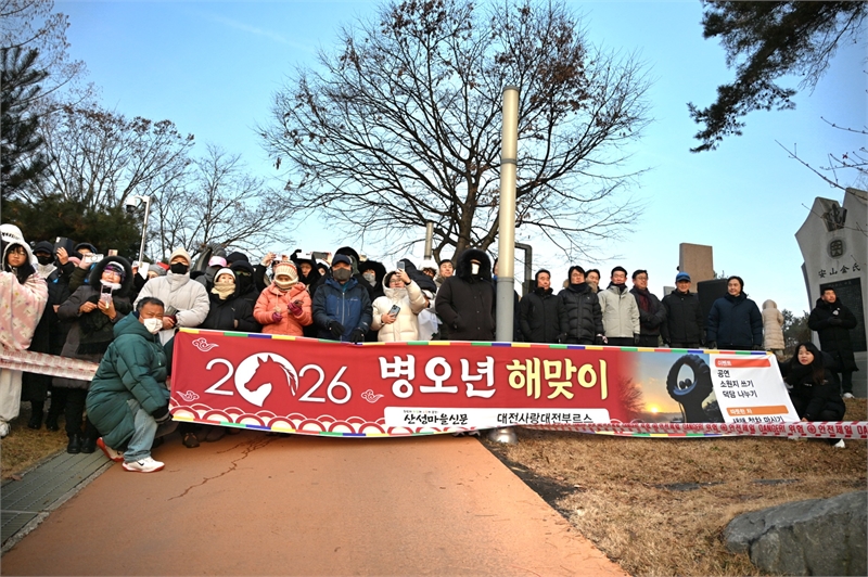 2026년 1월 1일 새해 아침에 중구 침산동 뿌리공원에서 '병오년 해맞이 행사'는 산성마을신문(대표 이기전)에서 주관했으며, 오수남 사회로 행사를 진행했다. 뿌리공원은 시내에서 접근성이 매우 쉽고, 주차장 넓고 무료이며, 어린이와 여성. 노인분들과 함께하기가 좋은 곳이다. 날씨는 최근에 와서 쌀쌀하지만, 주차장은 만