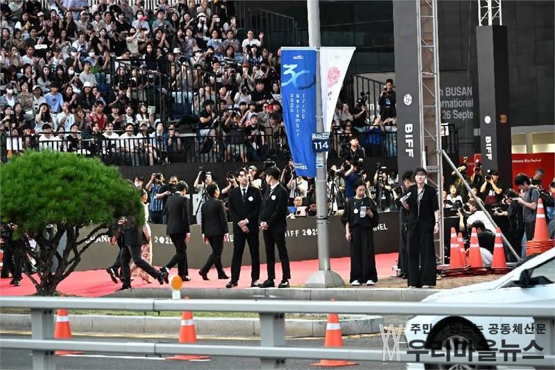 영화의전당 주변도로인 센텀서로는 전면통제, 센텀5로와 수영강변대로는 부분 통제를 했다. 또 입장을 못한 영화펜들은 도로변에 많은 분들이 있었으며, 대부분 외국인들이 환호와 촬영을 하고있었다.