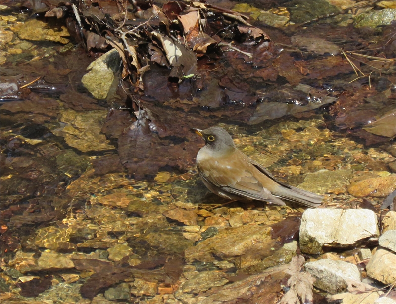 목욕하러 계류를 찾은 흰배지빠귀