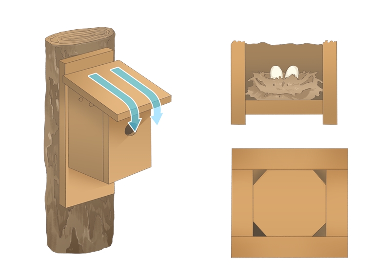 인공새집은 딱다구리가 파놓은 나무 구멍과 거의 같은 역할을 합니다.