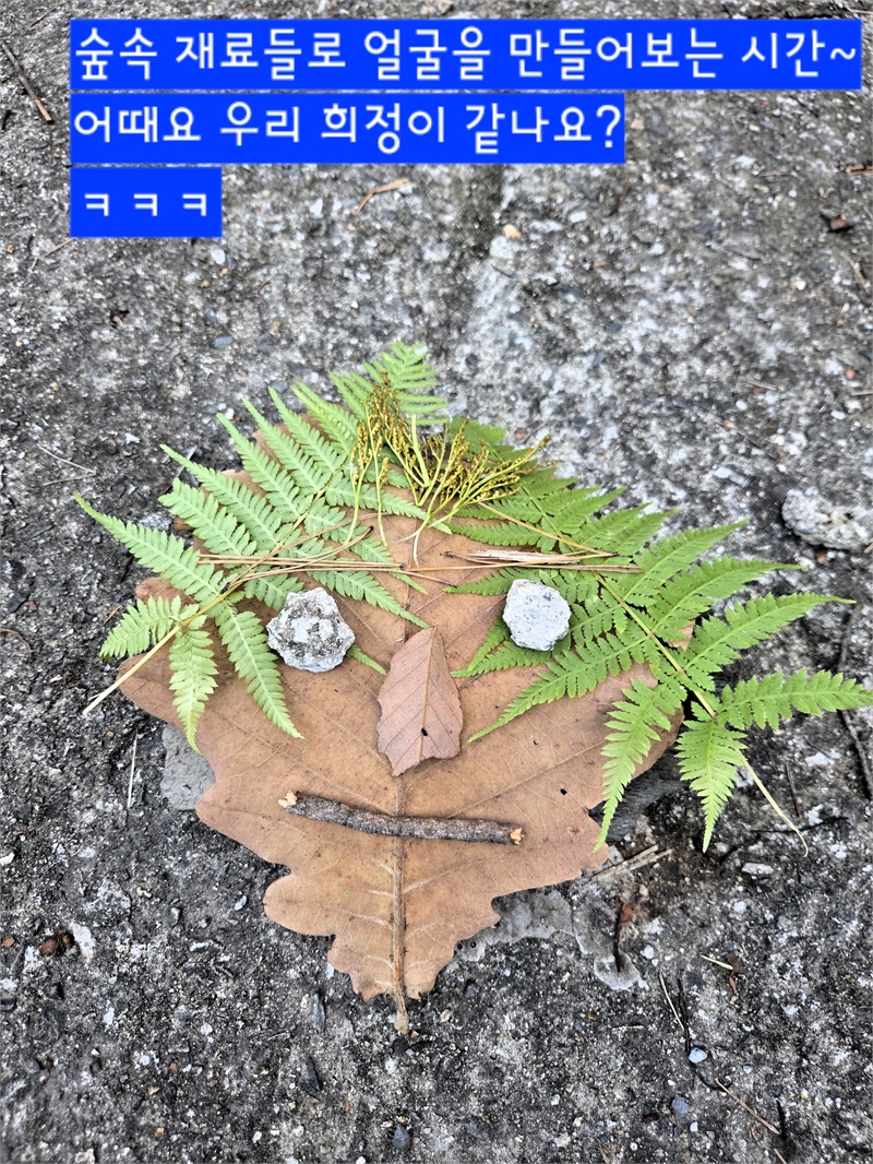 가족들은 주변에서 주운 낙엽과 나뭇가지로 가족 얼굴을 만드는 활동을 했습니다.