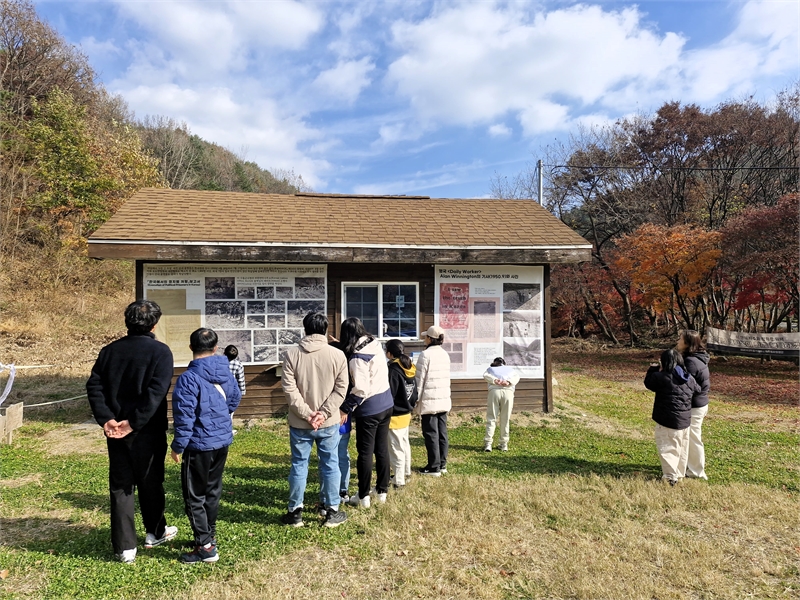 산내골령골의 역사적 사건을 보고 있는 발달장애인 가족